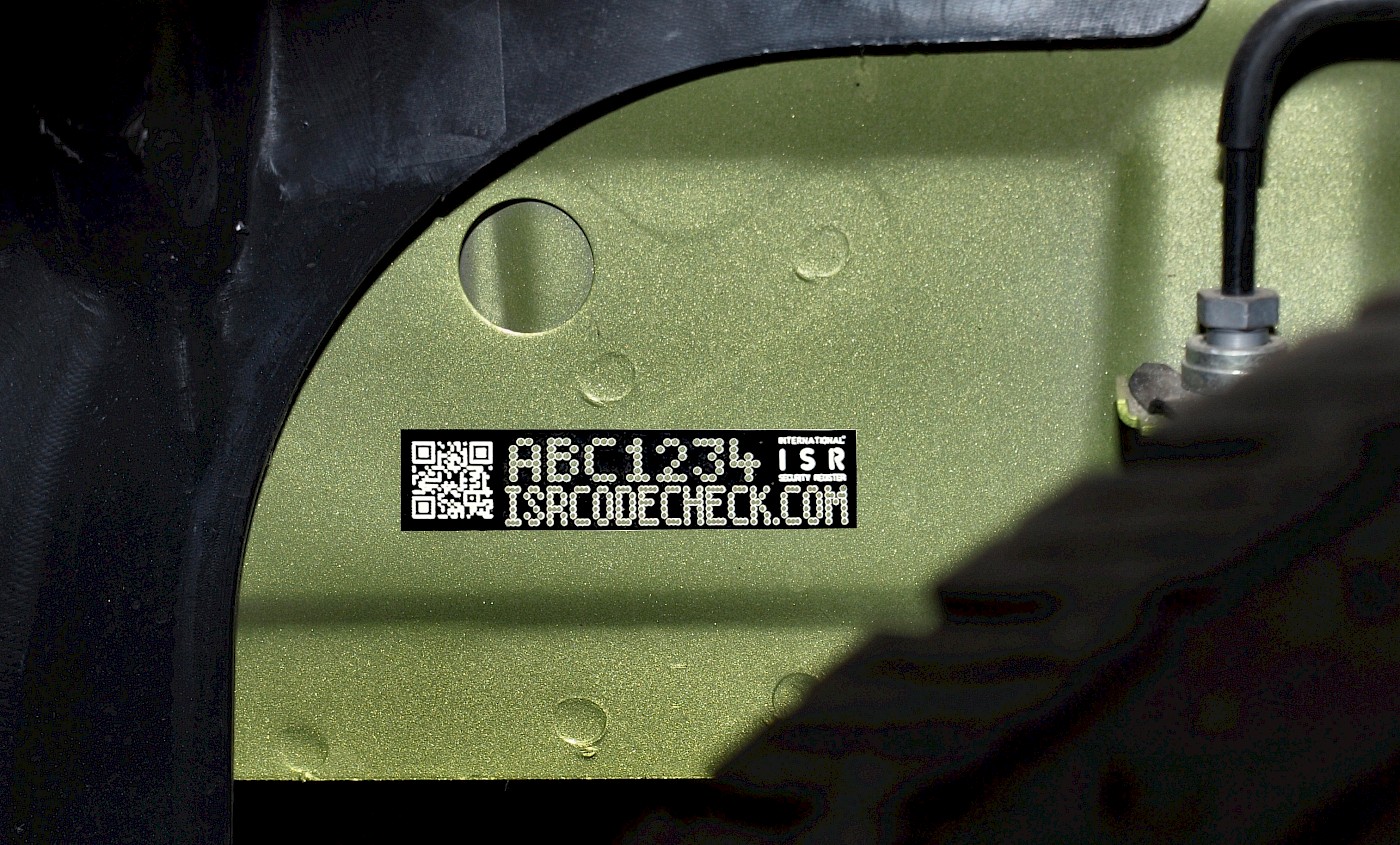 • Secure High-Value Components: Beyond the chassis, criminals target engines, doors, and body panels. Our Ultra-Destruct UV labels ensure every major component is linked to the International Security Register (ISR), making stolen parts high-risk and difficult to sell.